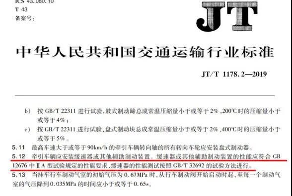 2019年3月15日,交通部發(fā)布了《營運貨車安全技術條例 第2部分:牽引車輛與掛車》,該標準代號為JT/T1178.2,從2019年7月1日起正式實施。