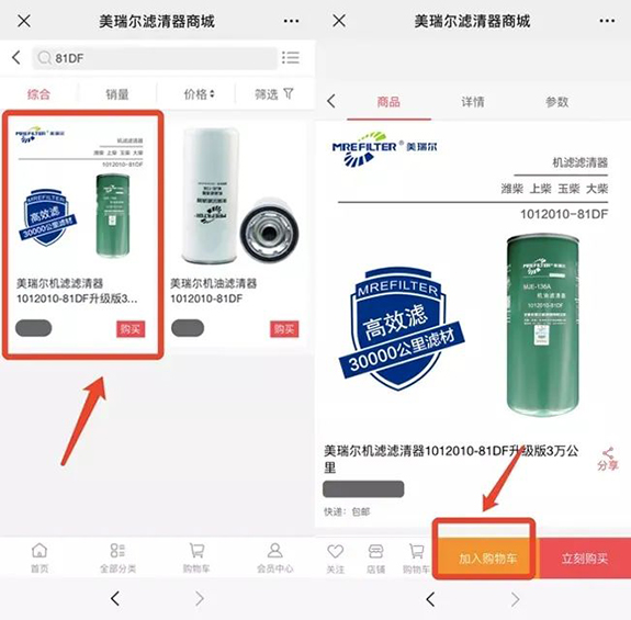 “美瑞爾濾清器商城”小程序